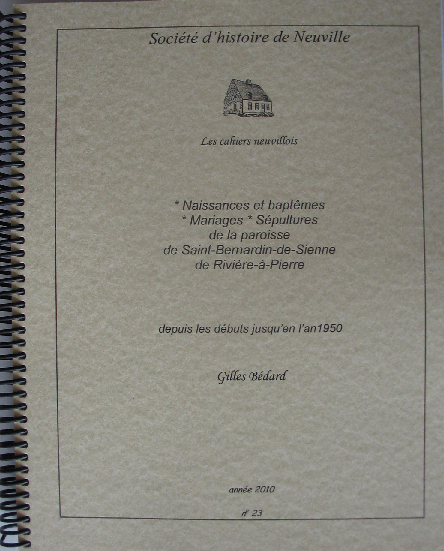 - Mise en pages du Cahier neuvillois no 23, BMS de Rivière-à-Pierre 1886-1950 réalisé par M. Gilles Bédard
